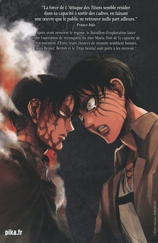 Après avoir renversé le régime, le Bataillon d'exploration lance enfin l'opération de reconquête du mur Maria. Fort de la capacité de durcissement d'Eren, leurs chances de réussite semblent bonnes, mais Reiner, Bertolt et le Titan bestial sont prêts à les recevoir !