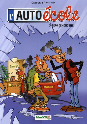 L'envie d'avaler de l'asphalte vient vous titiller à chaque fois que vous mettez le nez dehors ? Vous rêvez de devenir le roi de l'autoroute ou des chemins vicinaux cahoteux ? Vous n'avez qu'un seul désir, connaître vous aussi les joies de la circulation en plein centre-ville à l'heure de pointe ? Rien de plus simple, une seule adresse : L'auto-école Bokréno. Vous proposant autant de formations variées que de tarifs rondelets, notre équipe de moniteurs motivés vous enseignera aussi bien à démarrer en côte en cyclo qu'à faire des créneaux au volant d'un 36 tonnes. Et pour ce qui est de votre "Titine", objet de tous les fantasmes et de toutes les attentions, elle n'aura plus aucun secret pour vous, pas plus que n'en auront tous ces jolis panneaux colorés qui jalonnent les bordures de nos routes et qui, comme vous l'apprendrez rapidement, ne sont pas là que pour décorer. Sens interdit, stationnement interdit, demi-tour interdit, à vous la liberté ! !! Laissez-vous conduire tout au long de ces 46 pages, et vous découvrirez rapidement qu'avec l'auto-école Bokréno, tout est permis !