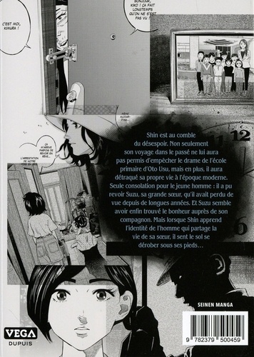 Shin est au comble du désespoir. Non seulement son saut dans le passé ne lui aura pas permis d'empêcher le drame de l'école primaire, mais en plus, il a modifié sa propre vie de retour à l'époque moderne. Seule consolation pour le jeune homme : dans cette nouvelle réalité, il a pu retrouver Suzu, sa grande soeur. Cette dernière a également une vie très différente de ce qu'elle était avant ses sauts dans le temps. Ici, elle a réussi à fuir le drame du meurtre de l'école primaire, dont leur père fut déclaré coupable, à changer de nom, à bâtir une vie de famille. Mais elle n'arrive toujours pas à confier ce secret à son mari. L'arrivée de Shin lui est donc très désagréable. Or le mari est un rescapé de la tuerie de l'école, il a survécu à l'empoisonnement mais est resté handicapé à vie. Et il risque de reconnaître Shin qui l'a croisé dans son voyage dans le passé. Entretemps, alors que l'on évoque un procès en révision du père de Shin, un témoin inattendu se manifeste, qui pourrait faire basculer toute l'affaire.