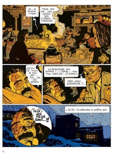 En été, dans l'Himâlaya, lorsque la neige fond aux heures les plus chaudes, l'eau qui ruisselle fredonne d'étranges mélodies. Hymnes d'hier, chansons de demain, plaisanteries polissonnes ou légendes oubliées. Ainsi, certains jours, on peut entendre dans le murmure né au soleil de midi, l'histoire de Lhahl et Porridge. Lhahl et Porridge qui, comme les eaux dévalant des sommets, mille fois se rencontrèrent, mille fois se séparèrent... La légende dit que le Bouddha d'Azur, dont les yeux changent de couleur à chaque heure du jour et de la nuit, est caché dans les entrailles de l'Himâlaya. La jeune Tibétaine Lhahl est la seule à connaître son emplacement, mais l'or de la mythique statue aiguise l'appétit des envahisseurs chinois. C'est en compagnie de l'Anglais Porridge que Lhahl trouvera sa voie. Le premier, Bernard Cosey a fait découvrir aux lecteurs occidentaux les mystères, les drames et les beautés du Tibet. Avec Le Bouddha d'Azur, l'auteur suisse revient sur son territoire de prédilection, là où géopolitique, spiritualité et sentiments amoureux s'inscrivent dans le diagramme d'un mandala unique en son genre. Un chef-d'oeuvre déjà couronné de succès.