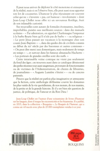 Il peut nous arriver de déplorer le côté monotone et ennuyeux de la réalité, mais si on l'observe bien, elle peut aussi nous apporter son lot de cocasseries. L'humour le plus réjouissant est souvent celui qui ne "s'invente" pas, cet humour "involontaire" dont Jean-Loup Chiflet nous offre ici un savoureux florilège, fruit de son inlassable curiosité. Ses trouvailles sont autant de formules étonnantes, insolites, improbables, puisées aux meilleures sources : dans des manuels scolaires - "Par admiration, on appelait Charlemagne l'empereur à la barbe fleurie bien qu'il n'eût pas de barbe" - ou religieux - "Le petit Jésus passait ses vacances à la montagne chez son cousin Jean-Baptiste" -, dans des guides dits de civilités commis au début du XXe siècle par des baronnes et autres comtesses - "On peut dire merci aux domestiques, mais seulement de temps en temps" -, et surtout dans les fameux almanachs Hachette -"Les porteurs de grandes oreilles sont des naïfs." Cette intarissable veine comique ne vient pas seulement du fond des âges ; on trouvera aussi dans ce catalogue déraisonné des perles récentes tout aussi saugrenues, provenant de fonctionnaires ou de victimes de l'Administration, de clients de librairies, de journalistes - "Auguste Lumière s'éteint" - ou de cancres patentés. Preuve que la réalité est parfois plus imaginative et attrayante que la fiction, cette anthologie drôlissime couvre les domaines les plus variés de la vie quotidienne, de nos moeurs, de nos manies, de la petite et de la grande histoire. Et il y est bien sûr question de justice, de politique, de l'amour et du Bon Dieu !