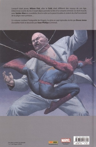 Lorsqu'il était jeune, Wilson Fisk, alias le Caïd, était différent des voyous de son âge. Déterminé à sortir du lot, il visait déjà à prendre la tête d'un empire criminel. Ce récit musclé, avec Spider-Man en covedette, lève le voile sur le passé trouble et violent du chef incontesté de la pègre new-yorkaise... Ce volume contient l'intégralité de Kingpin, la série en sept épisodes écrite par Bruce Jones (Incredible Hulk) et dessinée par Sean Phillips (Criminal).