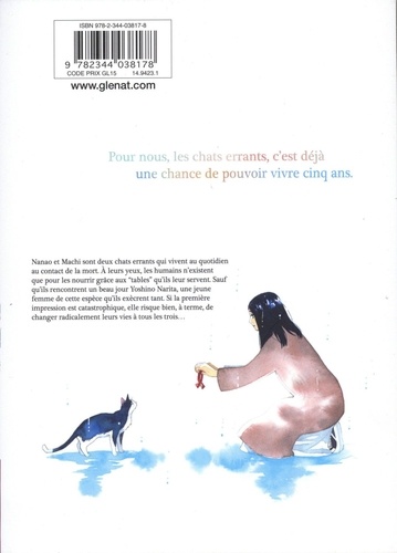 La vraie vie des chats Nanao et Machi sont deux chats qui vivent dans la rue. Ils se remplissent le ventre grâce aux "tables" que leur servent les humains, et vivent au quotidien au contact de la mort. A leurs yeux, les humains n'existent que pour les nourrir. Sauf qu'un beau jour, ils font la rencontre de Yoshino Narita, une jeune femme membre de cette espèce qu'ils exècrent tant. Pour elle comme pour eux, la première impression est catastrophique. Mais à terme, cette rencontre changera radicalement leurs vies à tous les trois... L'indépendance vaut-elle qu'on y sacrifie la moitié de son espérance de vie ? Ce récit en trois volumes suivra avec un regard tendre mais objectif les destins croisés de chats et d'humains et la réalité qu'ils vivent au jour le jour. Loin des caricatures des mascottes félines, tous les personnages sont décrits ici avec minutie grâce aux traits sensibles de Gin Shirakawa. Un récit universel pour mieux connaitre nos compagnons.