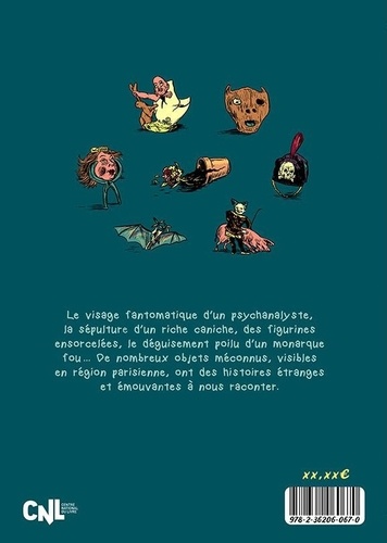 LE CHAT MOMIFIE. Le visage fantastique d'un psychanalyste, la sépulture d'un riche caniche, des figures ensorcelés, le déguisement poilu d'un monarque fou... De nombreux objets méconnus, visibles en région parisienne, ont des histoires étranges et émouvantes à nous raconter. Le Chat momifié : Musée du Louvre. L'étoile jaune Zazoue : Musée de la Préfecture de police. Offrandes aux divinités terribles : Musée du Quai Branly. Visage fantôme du psychanaliste : Cimetière Montmartre. Jeu de Fleurs Nintendo : Musée de la Carte à jouer. Masque de fantasmagories : Musée des Arts et Métiers. Déguisement d'homme sauvage : Tour Jean-sans-peur. Tombe de Tipsy : Cimetière des Chiens. Numéro de conscrit : Musée de l'Armée. Statue de Sainte Rita : Chapelle Sainte Rita. Pyrogène à la mouche : Musée du fumeur.