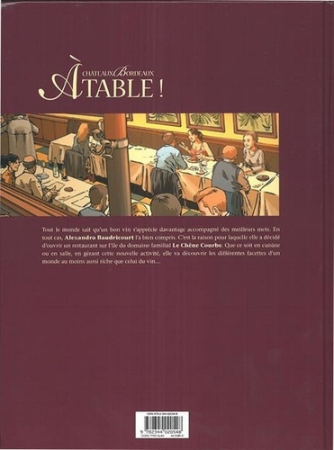Le verre et l'assiette Tout le monde sait qu'un bon vin s'apprécie davantage accompagné des meilleurs mets. En tout cas, Alexandra Baudricourt l'a bien compris. C'est la raison pour laquelle elle a décidé d'ouvrir un restaurant sur l'île du domaine familial Le Chêne-Courbe. Que ce soit en cuisine ou en salle, en gérant cette nouvelle activité, elle va découvrir les différentes facettes d'un monde au moins aussi riche que celui du vin... Les auteurs de Châteaux Bordeaux plongent leurs héros dans un diptyque centré sur la gastronomie. Ils réussissent le tour de force de vulgariser par la fiction de nouveaux savoir-faire passionnants au coeur de notre patrimoine.