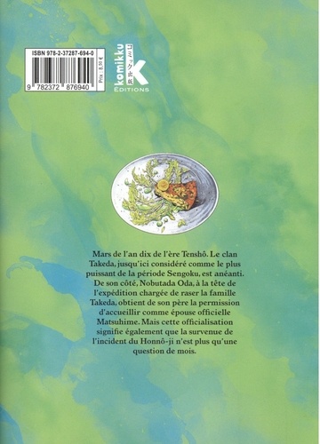 Sur une très légère trame de fond culinaire, découvrez un magnifique manga historique qui nous en apprendra plus sur Nobunaga, héros emblatique du 16eme siècle au Japon ! Mars de l'an dix de l'ère Tenshô. Le clan Takeda, jusqu'ici considéré comme le plus puissant de la période Sengoku, est anéanti. De son côté, Nobutada Oda, à la tête de l'expédition chargée de raser la famille Takeda, obtient de son père la permission d'accueillir comme épouse officielle Matsuhime. Mais cette officialisation signifie également que la survenue de l'incident du Honnô-ji n'est plus qu'une question de mois.