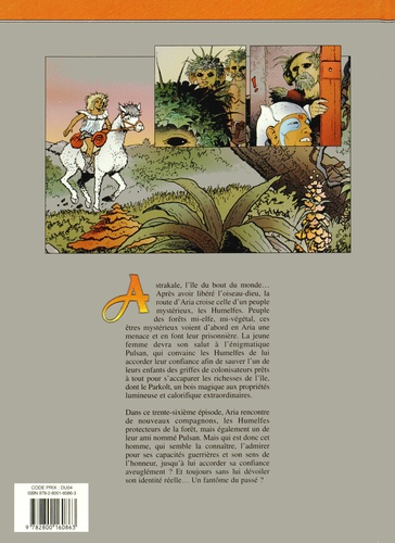 Astrakale, l'île du bout du monde... Après avoir libéré l'oiseau-dieu, la route d'Aria croise celle d'un peuple mystérieux, les Humelfes. Peuple des forêts mi-elfe, mi-végétal, ces êtres mystérieux voient d'abord en Aria une menace et en font leur prisonnière. La jeune femme devra son salut à l'énigmatique Pulsan, qui convainc les Humelfes de lui accorder leur confiance afin de sauver l'un de leurs enfants des griffes de colonisateurs prêts à tout pour s'accaparer les richesses de l'île, dont le Parkolt, un bois magique aux propriétés lumineuse et calorifique extraordinaires. Dans ce trente-sixième épisode, Aria rencontre de nouveaux compagnons, les Humelfes protecteurs de la forêt, mais également un de leur ami nommé Pulsan. Mais qui est donc cet homme, qui semble la connaître, l'admirer pour ses capacités guerrières et son sens de l'honneur, jusqu'à lui accorder sa confiance aveuglément ? Et toujours sans lui dévoiler son identité réelle... Un fantôme du passé ?