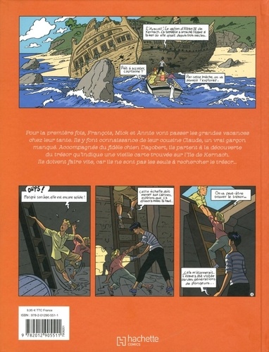 Pour la première fois, François, Mick et Annie vont passer les grandes vacances chez leur tante. Ils y font connaissance de leur cousine Claude, un vrai garçon manqué. Accompagnés du fidèle chien Dagobert, ils partent à la découverte du trésor qu'indique une vieille carte trouvée sur l'île de Kernach. Ils doivent faire vite, car ils ne sont pas les seuls à rechercher le trésor...