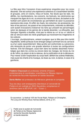 La fête peut être l'occasion d'une expérience singulière pour les corps dessinés. Elle est surtout une expérience collective où s'assemblent familles et groupes, amis et voisins, tribus et foules. Nul doute que les bals, les défilés, les manifestations, les concerts, les festivals, les cérémonies qui marquent les âges de la vie, ou encore les matchs de boxe, de basket ou de football sont autant de circonstances qui permettent de saisir la puissance expressive des corps. En effet, les rituels, les costumes, les accessoires, les lieux et les parcours, les poses et les comportements, ordonnés ou débridés, sont autant d'occasion d'observer les liens qui unissent les personnages selon les époques et les genres de la bande dessinée. La silhouette, que Georges Vigarello a étudiée, n'est pas la même au XIXe et au XXe siècle et elle se retrouve dans les récits graphiques qui traversent les imaginaires et les cultures. Le présent ouvrage, pluridisciplinaire, entend souligner que la fête peut être tantôt inquiétante, tantôt porteuse d'une énergie ludique culminant lors du carnaval ou d'un vaste rassemblement. Mais qu'elle soit conformiste ou subversive, elle nécessite de porter une grande attention à toutes les configurations festives. Elle fait dialoguer, aussi bien dans les bandes dessinées franco-belges, que dans les comics ou encore dans les mangas, les forces du rire et de l'effroi, du plaisir et de la retenue, de la codification et de la démesure. Pour mener à bien l'exploration du corps festif, défilent les scènes théâtrales, mais aussi les chants et la musique, du blues au rock, la danse, le sexe et la goinfrerie.