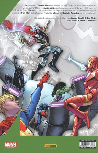 Le nouveau Ghost Rider doit relever un défi face à tous ses prédécesseurs. Que pourront faire les Avengers pour lui venir en aide ? De son côté, dans un lointain futur, Thor est confronté à l'instant le plus important de sa vie de roi d'Asgard, tandis qu'Iron Man doit affronter l'hybride Ultron. Et Captain America est un hors-la-loi ! De superbes aventures racontées par Aaron, Caselli, Ribid, Slott, Zub, Schiti, Coates et Masters.