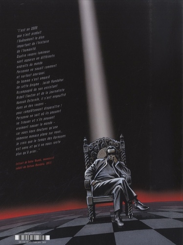 "C'est en 2009 que s'est produit l'évènement le plus important de l'histoire de l'humanité. Quatre rayons lumineux sont apparus en différents endroits du monde. Personne ne savait comment et surtout pourquoi. Un homme s'est emparé de cette énigme : Jacob Kandahar. Accompagné de son assistant Ardell Clayton et de la journaliste Hannah Osternik, il s'est engouffré dans un des rayons - pour complètement disparaître ! Personne ne sait où ils peuvent se trouver et s'ils peuvent vraiment sauver le monde - car nous nous doutons qu'une immense menace plane sur nous... Je crois que le temps des épreuves est venu et qu'il ne nous reste plus qu'à prier...".