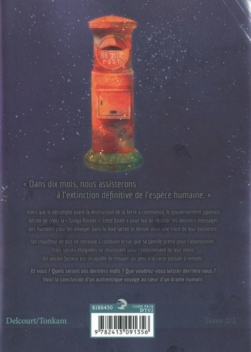 Alors que le décompte avant la destruction de la Terre a commencé, le gouvernement japonais décide de créer la "Ginga Rocket" Cette fusée a pour but de récolter les derniers messages des humains pour les envoyer dans la Voie lactée et laisser ainsi une trace de leur existence. Un chauffeur de bus se retrouve à conduire le car que sa famille prend pour l'abandonner. Trois soeurs éloignées se réunissent pour l'enterrement de leur mère. Un ancien facteur est incapable de trouver un sens a la carte postale à remplir. Et vous ? Quels seront vos derniers mots ? Que voudrez-vous laisser derrière vous ? Voici la conclusion d'un authentique voyage au coeur d'un drame humain.