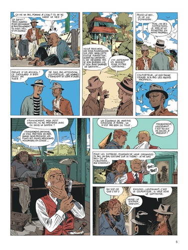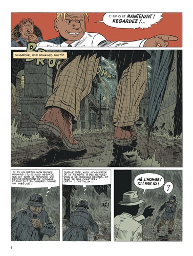Dépossédé de son ancienne cocoteraie florissante désormais entre les pinces du capitaine Crabb, Théodore Poussin nourrit son infortune avec Novembre dans les bas quartiers de Singapour. Bien qu'ils semblent n'être plus que l'ombre des fiers marins qu'ils étaient, leur volonté reste d'acier et leur intransigeante acuité dans les négociations n'a d'égale que la sage détermination qu'ils ont à acheter un navire, à engager un nouvel équipage et à reprendre la mer. Pour ce qui sera peut-être leur dernier voyage... Plus de dix ans après "Les jalousies", Frank Le Gall remet enfin les voiles dans ce nouveau tome aux airs d'apothéose. Parues par extraits en noir et blanc dans "Les Cahiers Théodore Poussin", ces planches tant attendues entraînent le lecteur dans le sillage du Quangle Wangle, rebaptisé L'Amok, comme pour souligner la folie qui paraît s'être emparée de son capitaine. Là-bas sur les rivages d'un archipel sauvage se joue peut-être l'ultime bataille du capitaine Poussin !