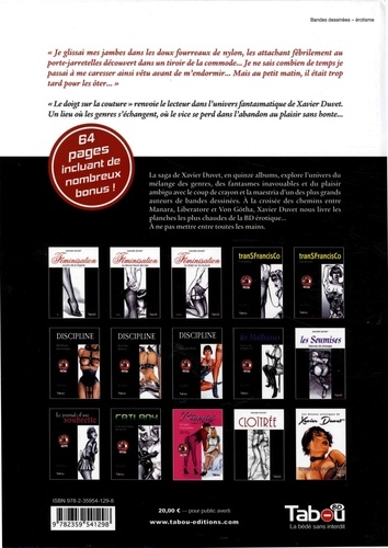 La saga de Xavier Duvet, en quinze albums, explore l'univers du mélange des genres, des fantasmes inavouables et du plaisir ambigu avec le coup de crayon et la maestria d'un des plus grands auteurs de bandes dessinées. A la croisée des chemins entre Manara, Liberatore et Von Götha, Xavier Duvet nous livre les planches les plus chaudes de la BD érotique... A ne pas mettre entre toutes les mains.