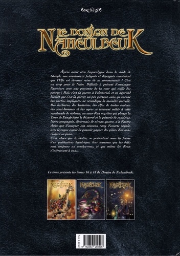 Après avoir vécu l'apocalypse dans le stade de Glargh, nos aventuriers fatigués et dépeignés constatent que l'Elfe est devenue reine de sa communauté ! C'en est trop pour le Nain. Difficile à présent d'envisager l'aventure avec une personne de la cour qui coiffe des poneys ! Mais c'est la guerre à Folonariel, et on apprend bientôt que c'est la guerre un peu partout, sans qu'aucune des parties impliquées ne revendique la moindre querelle. Des barbares, des humains, des elfes de toutes espèces, des semi-hommes et des ogres se trouvent mêlés à cette sarabande de violence, au coeur d'un mystère qui plonge la Terre de Fangh dans le désarroi et la pénurie de saucisses. Notre compagnie, désormais de niveau quatre, n'a d'autre choix que d'accepter son nouveau rang d'escorte royale, avec le vague espoir de pouvoir gagner des pièces d'or sans risquer sa peau. C'est alors que le destin, se présentant sous la forme d'un prédicateur hystérique, leur annonce que les défis sont toujours au rendez-vous, et que même les dieux s'intéressent à eux...