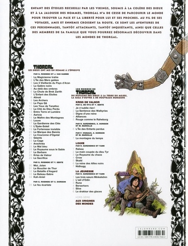 Enfant des étoiles recueilli par les vikings, soumis a la colère des dieux et a la jalousie des hommes, Thorgal n'a de cesse de parcourir le monde pour trouver la paix et la liberté pour lui et ses proches. au fil de ses voyages, amis et ennemis croisent sa route. Ce sont les aventures de ces personnages, tantôt attachants, tantôt inquiétants, ainsi que celles des membres de sa famille que vous pourrez désormais découvrir dans les mondes de Thorgal.