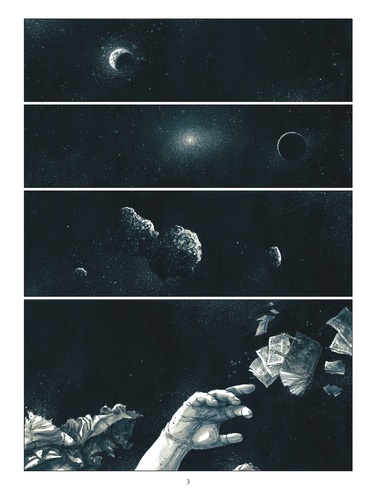 "Surveille tes pensées, elles peuvent engendrer des mondes !" Cette mise en garde, le révérend Philibert Etienne, occulte conseiller du Pape, aurait dû l'écouter avant de falsifier les termes d'un décret canonique, établissant un bagne pour les mauvaises âmes, entre le Paradis et les Enfers, à la place d'un doux lieu de rédemption. Fauché par la mort, le voici pris à son propre piège - tout premier résident de la prison qu'il vient de créer : le Refrigerium. Dans cet entre-deux-mondes, les défunts errent entre bistrots d'acide chlorhydrique et bagarres de rues, pour tromper un ennui qui les détourne d'eux-mêmes, sous un firmament plus noir que l'encre d'un dessinateur. Lorsqu'une vieille bicyclette, une sacoche et une casquette de facteur viennent à croiser le chemin de Philibert, il sent sa nouvelle vocation s'affirmer...