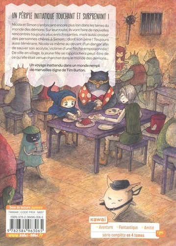 Nicola et Simon s'enfoncent encore plus loin dans les terres du monde des démons. Sur leur route, ils vont faire de nouvelles rencontres toujours plus enrichissantes, mais aussi croiser des personnes chères à Simon... dont son père ! Toujours aussi téméraire, Nicola va même au devant d'un danger afin de sauver son acolyte, victime d'une flèche empoisonnée ! De ville en village, la jeune fille se rapprochera peut-être de ce qu'elle était venue chercher dans le monde des démons...
