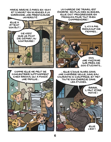 Marie Curie est la seule scientifique à avoir obtenu le prix Nobel dans deux disciplines, la physique et la chimie. Avec son mari Pierre, puis seule, elle étudie la radioactivité qui ouvre de nouvelles voies technologiques, mais se révèle aussi très dangereuse et finit par causer sa mort.