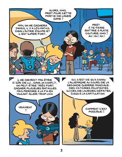 Nino n'a pas très envie d'affronter Léo-Mathis et sa bande au Laser game... Car ces derniers sont sûrs de leur force ! Ariane lui fait remarquer que l'Allemagne nazie, qui se sentait si puissante, a tout de même fini par perdre la Seconde Guerre mondiale... Un conflit qu'Ariane et Nino vont présenter d'une manière inédite, en expliquant comment chaque pays vécut la guerre, avec ses propres particularités. Un album, un pays. Ici l'Allemagne, prise dans la folie nazie par désir de revanche...