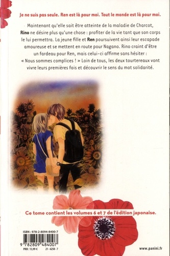 Je ne suis pas seule. Ren est là pour moi. Tout le monde est là pour moi. Maintenant qu'elle sait être atteinte de la maladie de Charcot, Rino ne désire plus qu'une chose : profiter de la vie tant que son corps le lui permettra. La jeune fille et Ren poursuivent ainsi leur escapade amoureuse et se mettent en route pour Nagano. Rino craint d'être un fardeau pour Ren, mais celui-ci affirme sans hésiter : "Nous sommes complices ! " Loin de tous, les deux tourtereaux vont vivre leurs premières fois et découvrir le sens du mot solidarité.