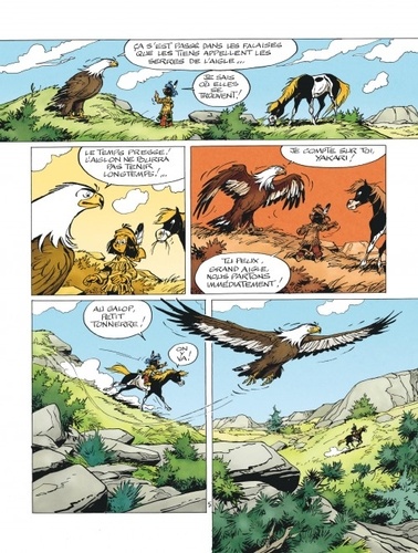 Depuis qu'il est un jeune papoose, Yakari a toujours pu compter sur le soutien de Grand-Aigle, son animal-totem. Aujourd'hui c'est Grand-Aigle qui appelle son ami à l'aide. La vie d'un petit aiglon est menacée. Et seul Yakari est en mesure de le sauver !