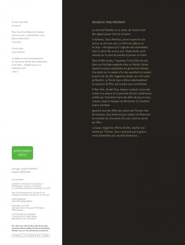 Traiter l'enlèvement d'une célébrité est toujours un défi de taille dans la carrière de n'importe quel policier. Quand il s'agit d'un Dieu, c'est carrément une tâche homérique. Même pour Frank Dito, qui en fait une affaire personnelle. Sans se douter qu'il est déjà dans le collimateur de forces qui le dépassent. Ebranlés par la disparition d'Apollon, les Dieux de l'Olympe voient éclater la fragile union qui s'était instaurée entre eux après la mort de Poséidon. Désormais, c'est chacun pour soi, suivant la grande tradition de cette famille dysfonctionnelle dont les membres excellent surtout à s'entre-déchirer. Pour le plus grand bonheur de Thymos, qui voit enfin arriver l'heure de sa vengeance. Toutes les familles ont leurs problèmes, mais lorsqu'il s'agit des Dieux de l'Olympe, le linge sale se lave en place publique et cela finit invariablement par éclabousser les humains.