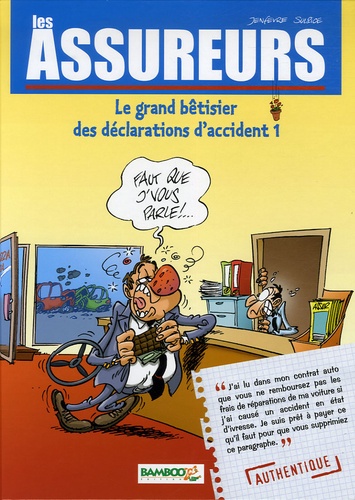 Le monde de l'assurance traîne souvent une image austère auprès du grand public. Ce que l'on connaît moins, c'est ce côté plein d'humour qui apparaît parfois lors de la lecture des déclarations d'accident. Certaines situations peuvent alors se révéler extrêmement comiques, et dignes de figurer dans les meilleurs recueils d'histoires drôles. Sur cette base de faits réels, deux auteurs de bande dessinée humoristique se sont attelés à sélectionner et illustrer, dans un style très libéré, les meilleures " perles " de l'assurance... Avec l'unique volonté de vous faire passer un moment très agréable.