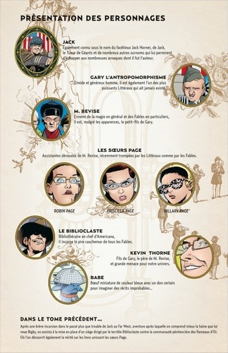 Tome 6 - le grand livre de la guerre : Face aux avatars de la censure qui menacent le camp de M. Revise, Jack se présente non plus en détenu, mais tel un général d'armée aux méthodes toutes personnelles. S'alliant, une fois n'est pas coutume, à ses geôliers du camp de redressement pour Fables indésirables, notre héros dévoile un génie tactique inédit, mais également quelques-uns de ses plus noirs secrets...