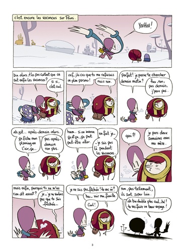 Peut-on vraiment tout dire à ses amis ? Les vacances d'hiver viennent de commencer sur Pouni ! Djipi doit partir pour deux semaines dans sa famille : ça n'a pas l'air de le réjouir, mais il n'en dit pas plus ! Lala, toujours curieuse et prête à tout, va le suivre en emmenant malgré elle Ange, José et Crap à la découverte mouvementée de l'étrange famille de Djipi, de son monde natal, et surtout de Djipi lui-même. Entre tendresse et difficultés de l'enfance, voici la suite des aventures lunaires et agitées du bocal d'Ange le Terrible !