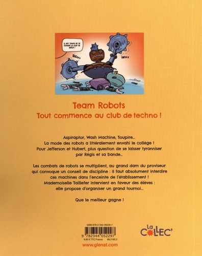 Un duo excentrique, plus fan de robotique que de mathématiques ! Grâce à Jeff et Hubert, la mode des robots est lancée, ils ont littéralement envahi le collège, au grand dam du principal ! Les professeurs tiennent un conseil pour discuter de leur interdiction. Mlle Taillefer argumente en faveur des élèves : quel dommage de brimer tant de créativité ! Elle propose alors d'organiser un tournoi de robots... Que le meilleur gagne !