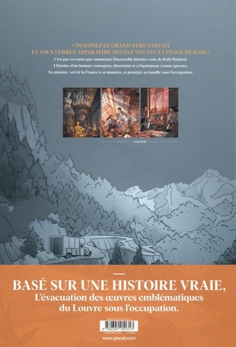 Mon grand-père ce héros ! Babi Maklouf a passé son enfance en Algérie, avant d'embarquer pour le pays de la liberté et des droits de l'homme à la fin des années 30. Fasciné par la France, le jeune homme pose ses valises avec femme et enfants à Paris et trouve bientôt un emploi pour le moins surprenant : gardien de nuit au musée du Louvre ! Le voilà entouré des plus grands chefs-d'oeuvre de l'Histoire et côtoyant Delacroix, De Vinci et autre Géricault ! Mais quand, en juin 1940, l'armée allemande arrive aux portes de Paris, il faut vite mettre à l'abri tous ces tableaux de maîtres au risque de les voir tomber entre les mains de l'envahisseur. Choisi pour être l'un des conducteurs de ces précieux camions, Babi accepte de sauver ce patrimoine inestimable à une condition : que sa famille l'accompagne. Commence alors un périlleux voyage à travers un pays occupé où la peur et la désolation ne sont jamais loin. Déterminé, Babi va faire preuve d'un courage simple et d'un optimisme à toute épreuve pour servir la France à sa manière et protéger sa famille... " Imaginez le grand-père parfait et vous verrez apparaître devant vos yeux, Babi " c'est par ces mots que commence l'incroyable histoire vraie de Babi Maklouf à travers laquelle, le réalisateur Elie Chouraqui rend un vibrant hommage à son propre grand-père. Le dessin harmonieux aux couleurs chaleureuses de Letizia Depedri, qui signe là sa première bande dessinée, magnifie cet émouvant récit de voyage où résonne le courage d'un homme et son amour pour la France.