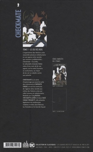 L'organisation des Nations Unies rassemble plusieurs métahumains en une organisation ultra-secrète aux missions confidentielles L'organisation des Nations Unies rassemble plusieurs métahumains en une organisation ultra-secrète aux missions confidentielles : Checkmate ! A sa tête, la redoutable Amanda Waller mène d'une main de fer ses agents, qu'ils soient humains ou surhumains, au risque de les voir se rebeller contre son autorité. Contenu : Checkmate Vol1 : A King's Game (#1-7) + Vol. 2 : Pawn Breaks (#8-12) + Outsiders/Checkmate : Checkout (Outsiders #47-49, Checkmate #13-15).