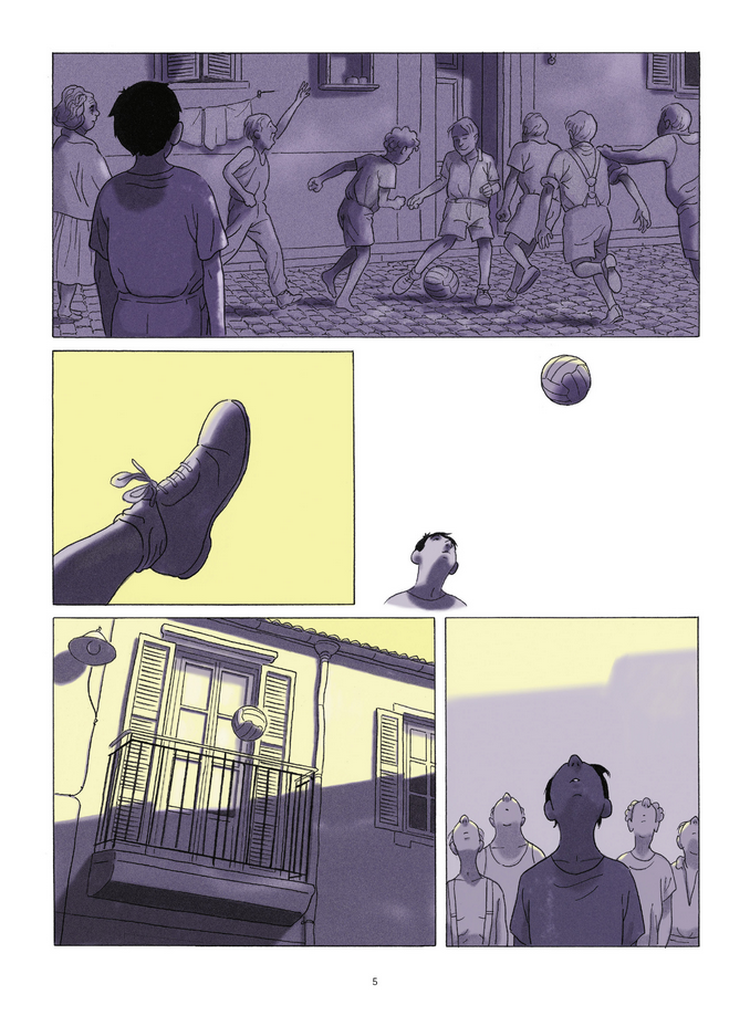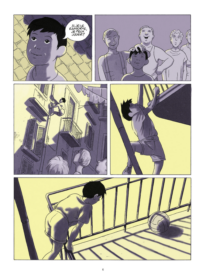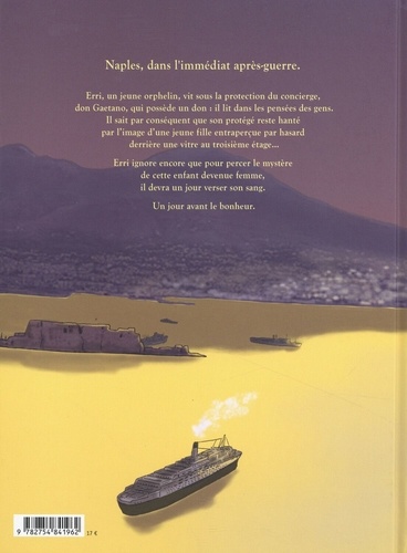 Nous sommes à Naples, dans l'immédiat après-guerre. Un jeune orphelin, vit sous la protection du concierge, Don Gaetano. Il passe du temps avec lui, pour parler des années de guerre et de la libération de la ville par les Napolitains. Mais Don Gaetano possède un autre don : il lit dans les pensées des gens, et il sait par conséquent que son jeune protégé reste hanté par l'image d'une jeune fille entraperçue un jour derrière une vitre, par hasard, lors d'une partie de football dans la cour de l'immeuble. Quand la jeune fille revient des années plus tard, le narrateur aura plus que jamais besoin de l'aide de Don Gaetano... Didier Tronchet adapte le roman d'Erri De Luca en une bande dessinée fluide et poétique, tandis que Christian Durieux recrée la cour de l'immeuble en un petit théâtre d'ombres et de lumières qui donne à cette fable une touche de merveilleux, avec un dessin élégant et mélancolique.