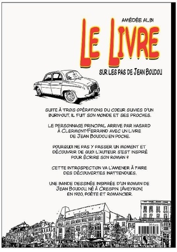 Suite à trois opérations du coeur suives d'un burn-out, il fuit son monde et ses proches. Le personnage principal arrive par hasard à Clermont-Ferrand avec in livre de Jean Boudou en poche. Pourquoi ne pas y passer un moment et découvrir de quoi l'auteur s'est inspiré pour écrire son roman ? Cette introspection va l'amener à faire des découvertes inattendues. Une bande dessinée inspirée d'un roman de Jean Boudou, né à Crespin (Aveyron) en 1920, poète et romancier.