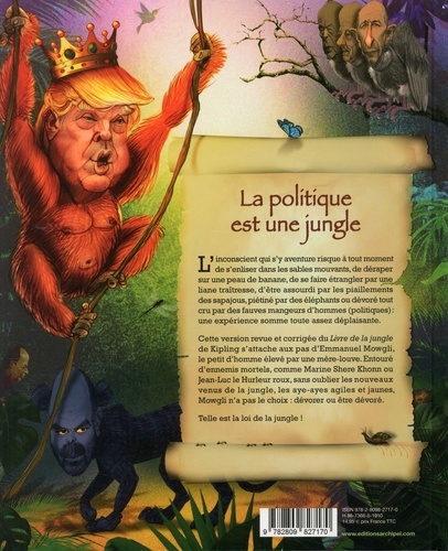 C'est la loi de la jungle ! L'oeuvre de Rudyard Kipling n'a rien perdu de sa modernité. A y regarder de plus près, Mowgli et ses amis de la jungle ne sont pas sans rappeler le paysage politique français ! Macron, dit Mowgli, avait pourtant démarré dans un marécage gouvernemental environné de grands fauves (dont Marine Le Pen, en tigresse Shere Khonn), de vieux singes et d'un grand nombre de primates (Mélenchon le hurleur roux, Bayrou le nasique ou Sarko le sagouin...). Et pourtant, il finit par devenir le roi de la jungle, à la surprise de tous ceux qui n'auraient pas misé une cacahuète sur ses chances de l'emporter ! Autour de lui, quelques velus comparses : Raskha aka Brigitte Macron, mère louve qui avait flairé son potentiel dès le plus jeune âge ; Edouard "Bagheera" Philippe, carnassier... plutôt habitué à avaler des couleuvres ; Castaner le buffle, qui charge à coups de cornes ; ou le gorille Benalla, dont le seul problème serait peut-être d'essaimer un peu trop de peaux de banane sur son passage... C'était compter sans l'arrivée de nouveaux venus dans cette jungle, Cégété le ragondin suivi d'une cohorte d'humanoïdes aux accoutrements jaunes fluos !