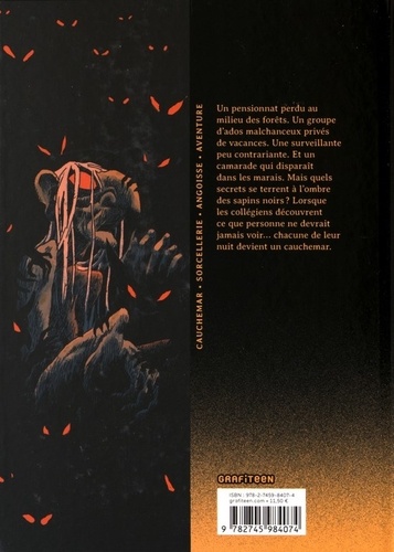 Un pensionnat perdu au milieu des forêts. Un groupe d'ados malchanceux privés de vacances. Une surveillante peu contrariante. Et un camarade qui disparait dans les marais. Mais quels secrets se torrent à l'ombre des sapins noirs ? Lorsque les collégiens découvrent ce que personne ne devrait jamais voir... chacune de leur nuit devient un cauchemar.