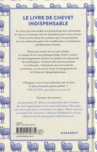 Le Livre qui vous endort ne prétend pas être intéressant et vous n'y trouverez rien de stimulant pour votre cerveau. C'est un livre hors du commun qui vous permettra de vous endormir grâce à de nombreuses connaissances parfaitement inutiles. Retrouvez réunis en un seul volume le résumé de la crise politique belge (2007 à 2011), les développements récents en matière de taxonomie des mollusques, l'histoire des services postaux en Indonésie, l'almanach international du cornichon, ou encore la revue en lipogramme de la littérature lipogrammatique.