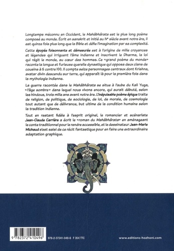 Longtemps méconnu en Occident, le Mahâbhârata est le plus long poème composé au monde. Ecrit en sanskrit et initié au IVe siècle avant notre ère, il est quinze fois plus long que la Bible et défie l'imagination par sa complexité. Cette épopée foisonnante et démesurée est à l'origine de mille croyances et légendes qui irriguent l'âme indienne et inscrivent le Dharma, la loi qui régit le monde, au coeur des hommes. Ce "grand poème du monde" raconte la longue et furieuse querelle dynastique qui opposa deux clans de cousins à 5 contre 100. Il compte seize personnages centraux dont Krishna, avatar divin descendu sur terre, qui apparaît là pour la première fois dans la mythologie indienne. La guerre racontée dans le Mahâbhârata se situe à l'aube du Kali Yuga, "l'âge sombre" dans lequel nous vivons encore, qui aurait débuté, selon les hindous, trois mille ans avant notre ère. L'Inépuisable poème épique traite de religion, de politique, de sociologie, de loi, de morale, de cosmologie tout autant que de délivrance, but ultime de la condition humaine selon la tradition indienne.
