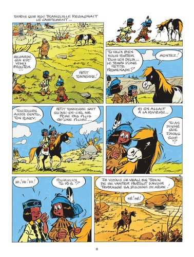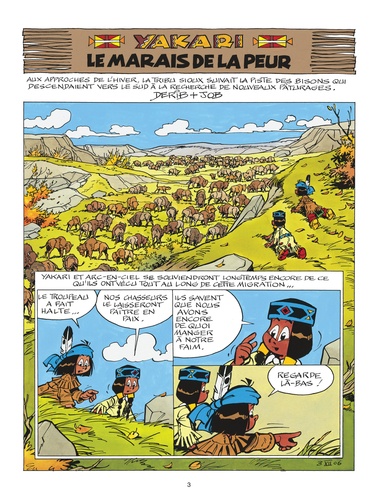 Un petit bison qui charge sa bisonne de mère avant de la terrasser. Un heyoka (un "contraire") qui monte face à la croupe de son cheval et dit "Au revoir !" pour "Bonjour !". Un renard qui grimpe aux arbres et saute de branche en branche. Des nuées de pigeons migrateurs éclipsant le soleil. Un coucou coureur de route courant au secours de malheureux ratons laveurs menacés par un lézard géant armé de terribles dents. Yakari, le bout d'Sioux, se souviendra longtemps encore de ce qu'il a vécu, en compagnie de sa fidèle amie Arc-en-Ciel, tout au long de cette nouvelle aventure !