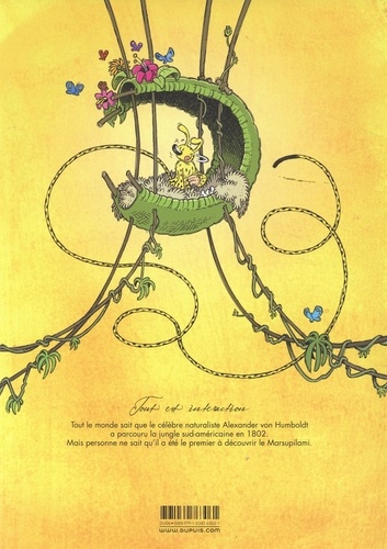 Amérique du sud, décembre 1801. L'explorateur Alexander von Humboldt capture le Marsupilami, une créature totalement inconnue, tout en s'emparant de trois de ses oeufs. Sa trouvaille exceptionnelle, apportée au musée d'Histoire naturelle de Berlin, y sera pourtant négligée puis totalement oubliée... C'est là, en 1931, que Mimi, une petite fille de 7 ans, va faire la rencontre du Marsupilami. Ensemble, ils vont mettre Berlin sens dessus dessous ! Mais surtout : ils vont tenter de retrouver les oeufs du Marsu disparus dans la grande ville... A la suite du succès de son Spirou à Berlin, l'artiste allemand Flix se tourne vers un autre classique de la BD franco-belge, en redonnant vie au mythique Marsupilami sous la République de Weimar !