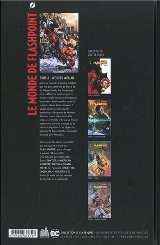 Dans ce monde à jamais modifié par les agissements de Flash et du Néga-Flash, les Amazones et les Atlantes sont en guerre et leur confia menace d'embraser la planète. Mois quelles sont les origines d'une telle rancoeur ? Quels sont les liens qu'ont entretenus Aquaman et Wonder Woman avant d'en venir de telles extrémités ? Et où se trouve enfermé le dernier rescapé de la planète Krypton ? Les réponses pourraient bien modifier à jamais le cours de l'Histoire... Découvrez les récits complets qui entourent le récit de Flashpoint, qui a changé jamais l'Univers DC. Des auteurs de renom dont Scott Snyder (American Vampire, Batman Death Metal) et Vicente Cifuentes (Aquaman, Injustice 2) lèvent le soda sur les recoins du Monde de Flashpoint.