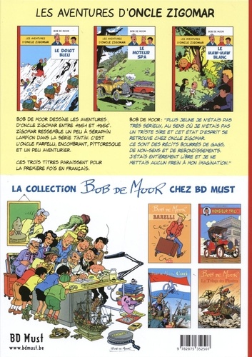 Bob de Moor dessine Les aventures d'oncle Zigomar entre 1951 et 1956. Zigomar ressemble un peu à Séraphin Lampion dans la série Tintin. C'est l'oncle farfelu, encombrant, pittoresque et un peu aventurier. Ces trois titres paraissent pour la première fois en français. Bob de Moor : "Plus jeune je n'étais pas très sérieux, au sens où je n'étais pas un triste sire et cet état d'esprit se retrouve chez oncle Zigomar. Ce sont des récits bourrés de gags, de non-sens et de rebondissements. J'étais entièrement libre et je ne mettais aucun frein à mon imagination."