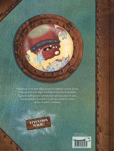 A Pamprelune, tous les habitants sont des sorciers et des sorcières. Dans ce petit village fantastique où des dragons apprivoisés côtoient des citrouilles-boîtes-aux-lettres et où magie et sortilèges font partie du quotidien, trois petites sorcières de huit ans sont victimes tour à tour d'un mauvais sort. Harmonie, petite sorcière elle aussi, est la principale suspecte. Elle aura sans doute voulu venger sa petite soeur Miette, souffre-douleur des trois premières... Mais Harmonie est innocente ! Elle est aussi la seule à pouvoir enquêter et à découvrir qui est le mystérieux enchanteur.