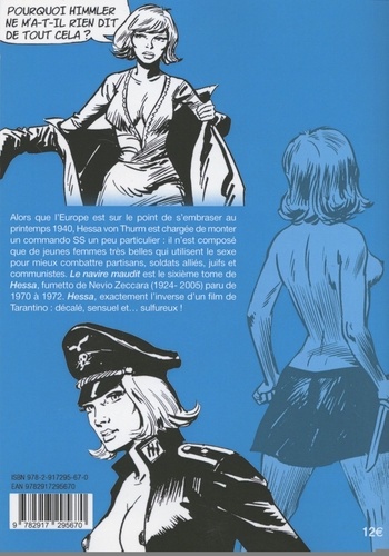 Alors que l'Europe est sur le point de s'embraser au printemps 1940, Hessa von Thurm est chargée de monter un commando SS un peu particulier : il n'est composé que de jeunes femmes très belles qui utilisent le sexe pour mieux combattre partisans, soldats alliés, juifs et communistes. Le navire maudit est le sixième tome de Hessa, fumetto de Nevio Zeccara (1924- 2005) paru de 1970 à 1972. Hessa, exactement l'inverse d'un film de Tarantino : décalé, sensuel et... sulfureux !