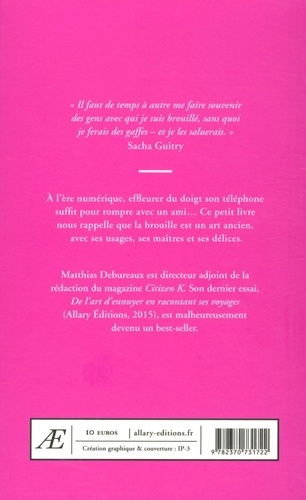A l'ère numérique, effleurer du doigt son téléphone suffit pour rompre avec un ami... Ce petit livre nous rappelle que la brouille est un art ancien, avec ses usages, ses maîtres et ses délices.
