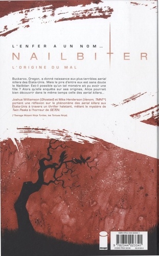 Découvrez l'origine du mal... Buckaroo, dans l'Oregon, a donné naissance aux plus terribles serial killers des Etats-Unis. Mais le pire d'entre eux était sans doute le Nailbiter. Est-il possible qu'un tel monstre ait pu avoir une fille ? Alors qu'elle enquête sur ses origines, Alice pourrait bien découvrir dans le même temps celle des serial killers... Fans de Wytches, Outcast et Walking Dead, frissonnez et plongez dans ce thriller sanglant au suspense insoutenable !