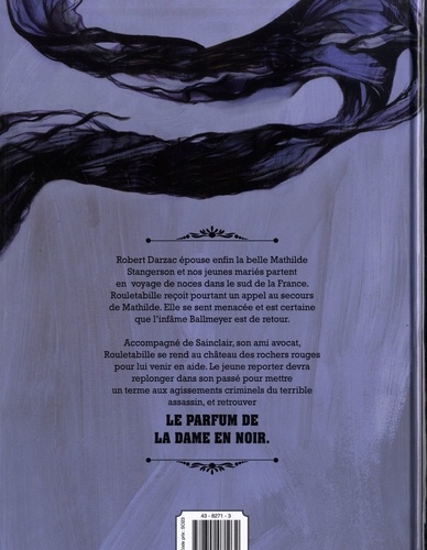 Une nouvelle enquête pour le célèbre reporter de Gaston Leroux ! Le Parfum de la dame en noir nous permet de retrouver le Rouletabille du Mystère de la chambre jaune, dont il est la suite directe. Robert Darzac épouse enfin la belle Mathilde et nos jeunes mariés partent en voyage de noces dans le sud de la France. Rouletabille reçoit alors un appel au secours de Mathilde. Elle se sent menacée et est certaine que l'infâme Ballmeyer est de retour. Accompagné de Sainclair, Rouletabille la rejoint pour lui venir en aide. Il devra replonger dans son passé pour mettre un terme aux agissements criminels du terrible assassin...