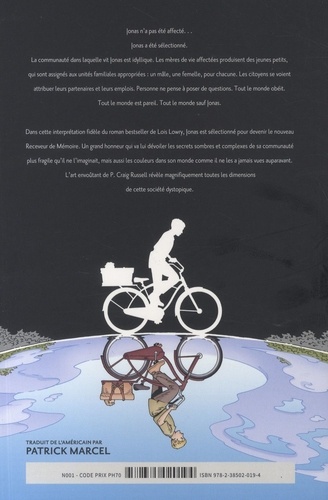 Lorsque Jonas aura douze ans, il se verra attribuer, comme tous les enfants de son âge, sa future fonction dans la communauté. Dans le monde où vit Jonas, la guerre, la pauvreté, le chômage, le divorce n'existent pas. Les inégalités n'existent pas. La désobéissance et la révolte n'existent pas. Jonas ne sait pas encore qu'il est unique... Dans le monde où vit Jonas, la guerre, la pauvreté, le chômage, le divorce n'existent pas. Les inégalités n'existent pas. La désobéissance et la révolte n'existent pas. L'harmonie règne dans les cellules familiales constituées avec soin par le comité des sages. Les personnes trop âgées, ainsi que les nouveau-nés inaptes sont " élargis ", personne ne sait exactement ce que cela veut dire. Dans la communauté, une seule personne détient véritablement le savoir : le passeur. Lui seul sait comment était le monde quand il y avait encore des animaux, quand l'oeil humain pouvait voir les couleurs, quand les gens tombaient amoureux. Lorsque Jonas aura douze ans, il se verra attribuer, comme tous les enfants de son âge, sa future fonction dans la communauté. Jonas ne sait pas encore qu'il est unique... Mêlant science-fiction et philosophie, Lois Lowry signe un roman envoûtant d'une incroyable densité, dans un style très particulier, où les genres cohabitent. La réflexion profonde, intelligente et sensible du récit original est ici parfaitement retranscrite dans l'adaptation de P. Craig Russel.