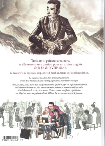 A la fois fiction contemporaine et récit historique, le Peintre oublié est composé de deux histoires qui s'interpénètrent pour ne former qu'un seul récit. Trois amis, peintres amateurs, se découvrent une passion pour un artiste anglais de la fin du XVIII ? siècle : Thomas Girtin. La découverte de ce peintre est pour Fred, Sarah et Arturo une double révélation. La révélation du talent d'un artiste extraordinaire, et celle d'un passé que chacun n'avait pas forcément envie de voir ressurgir. Thomas Girtin, dont l'oeuvre a été presque entièrement ignorée malgré son influence considérable sur la peinture britannique, s'est imposé comme un pionnier et un maître de l'aquarelle. Mais la brièveté de sa vie - il est mort à 27 ans - comme ses affinités socialistes et son admiration pour la Révolution française, peu goûtées dans l'Angleterre de cette époque, ont éclipsé son oeuvre au profit de celle de J. M. W Turner, son ami de jeunesse. En utilisant cette double narration pour établir des parallèles entre deux époques de progrès technologiques rapides et de turbulences sociopolitiques, le nouveau roman graphique d'Oscar Zarate rend justice à cet artiste injustement oublié. Oscar Zarate est un aquarelliste de grand talent. Après avoir travaillé avec Alan Moore et Carlos Sampayo, il signe seul ce roman graphique fleuve et passionnant qui rend un hommage vibrant à ce "peintre oublié".